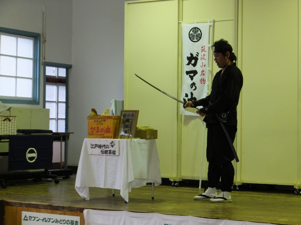 まずは、地元・河口湖の大道芸人、泣く子も黙るガマの油売り&南京玉すだれの