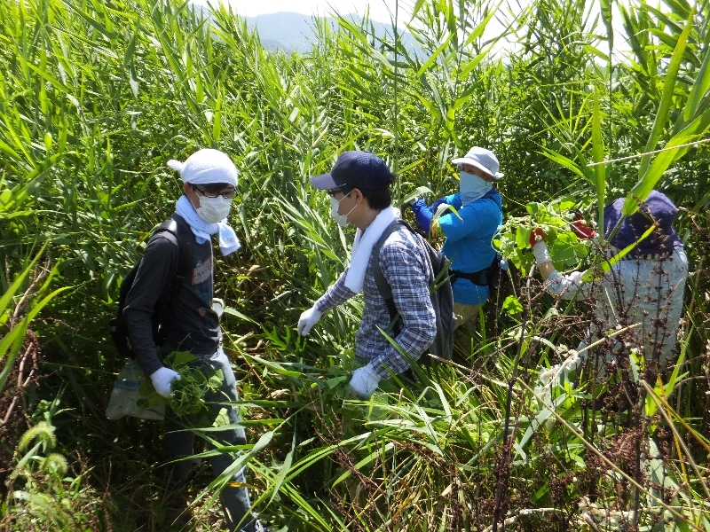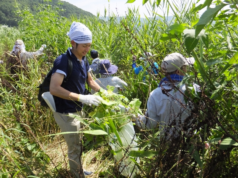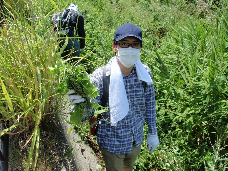今日は取材の方も来てくれましたが、参加者の皆さんと一緒になって駆除活動に奮闘!