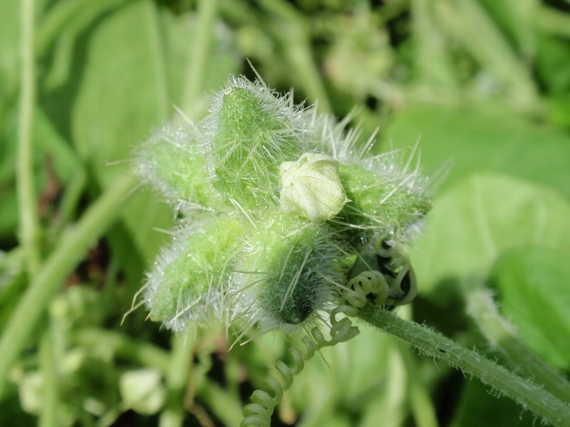 アレチウリはもう花をつけ、種ができ始めています。