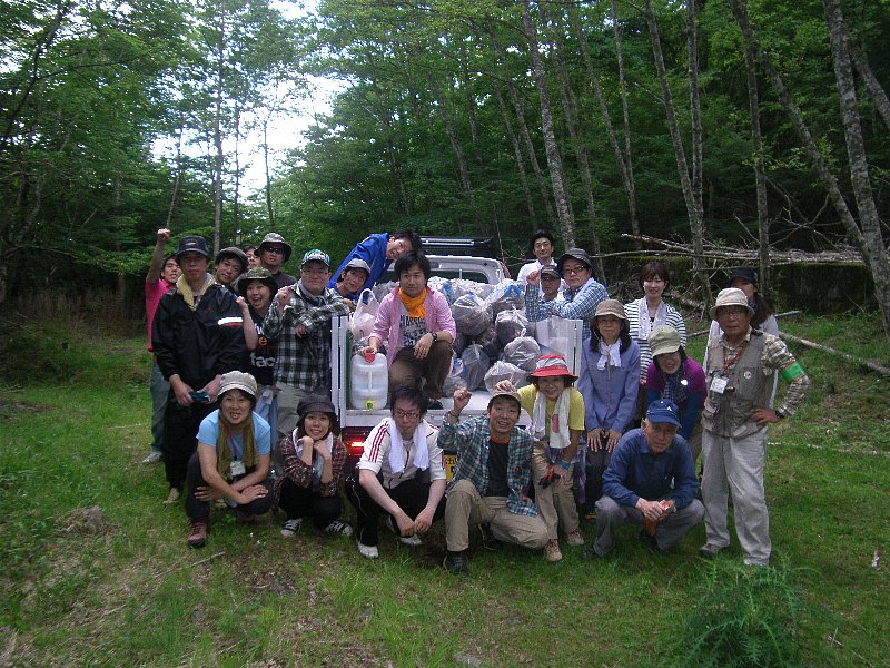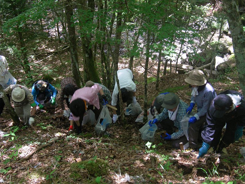 折り返し地点、山小屋跡地で30分間の清掃活動を実施しました。