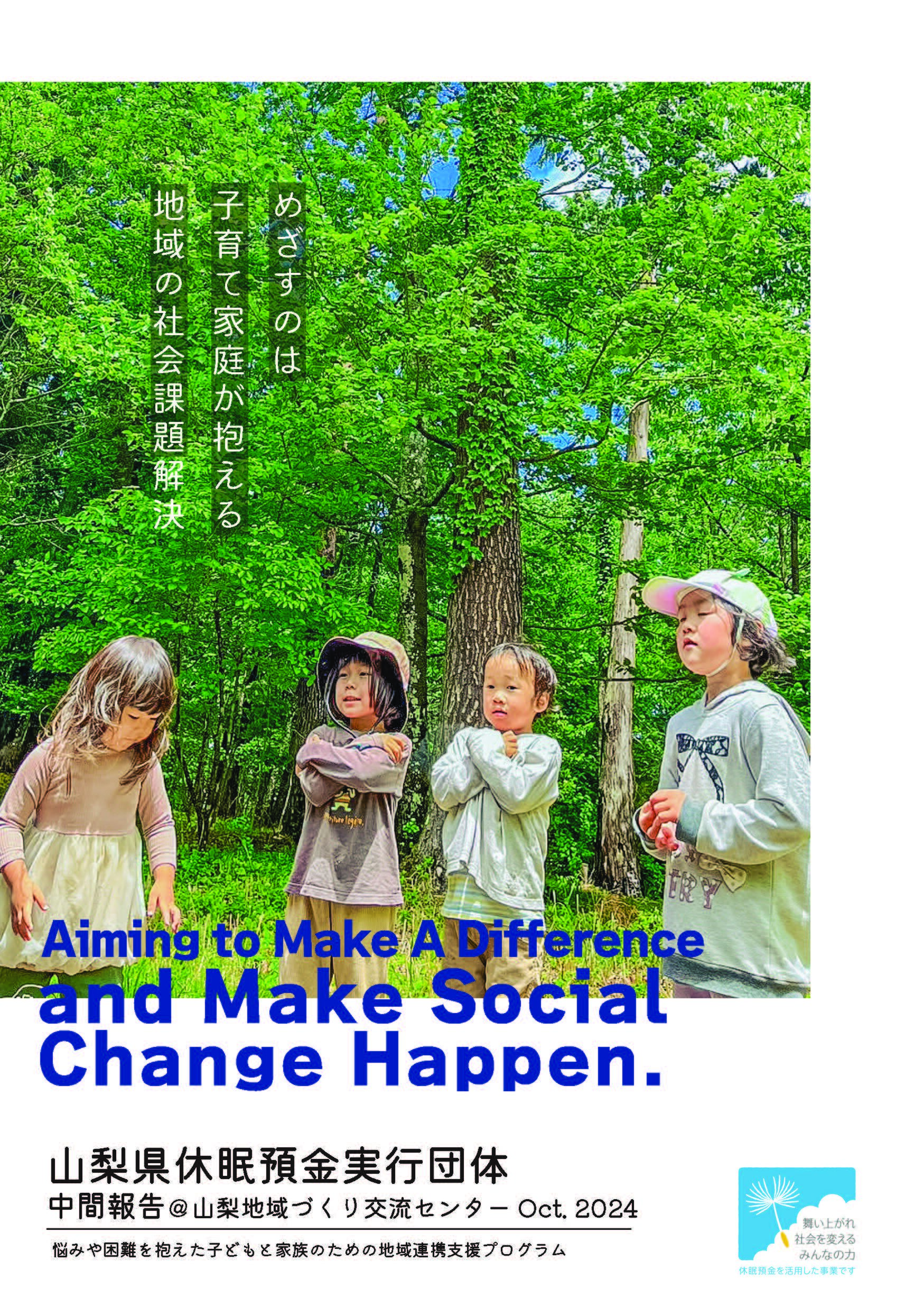 休眠預金活用事業 原油価格・物価高騰、子育て及び新型コロナ対応支援枠「悩みや困難を抱えた子どもと家族のための地域連携支援プログラム」実行団体7団体による活動の中間発表会(2024年10月9日)に合わせて、活動紹介冊子を発行しました。![]()