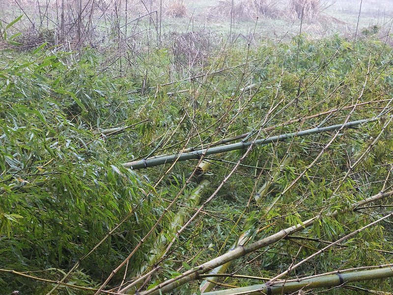 風で竹が揺れる度、竹に付いた雨や霧の滴が