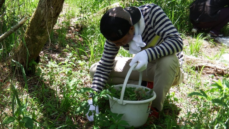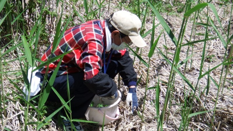 参加者の方々はバケツを片手に幼芽を丁寧に引き抜くという作業に入りました。