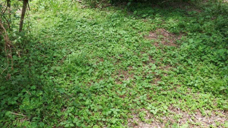 現場の一部にアレチウリ幼芽がじゅうたんのように