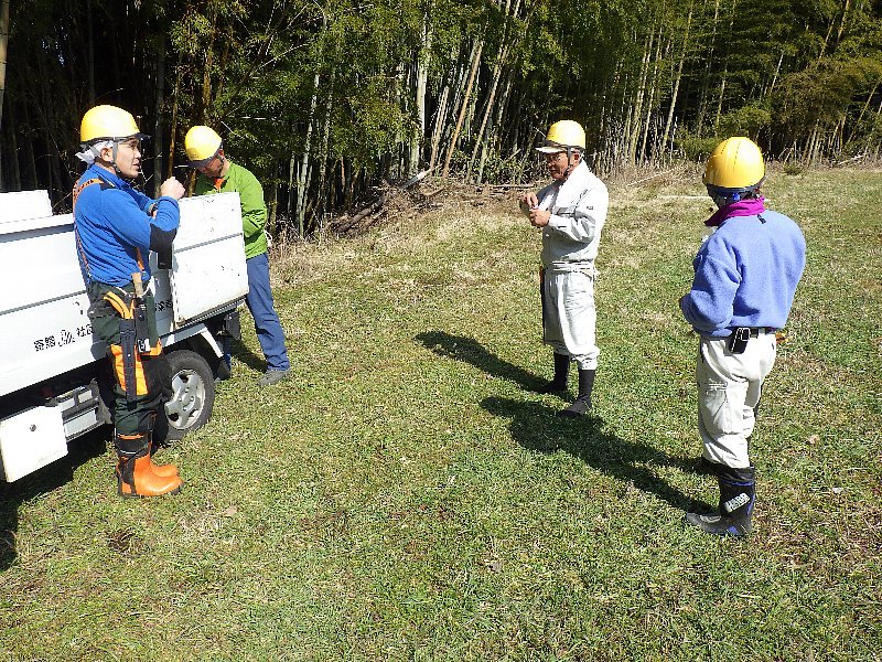 竹林整備活動常連のみなさんと現場へ移動後作業内容の確認。