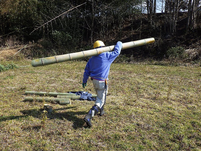 この現場は、竹林の南側に牧草地があります。