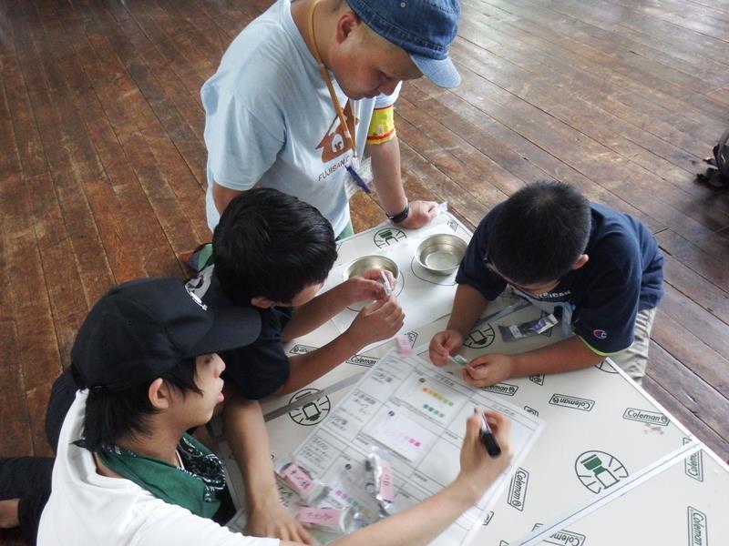 川上、川下からサンプル水を持ち帰り、