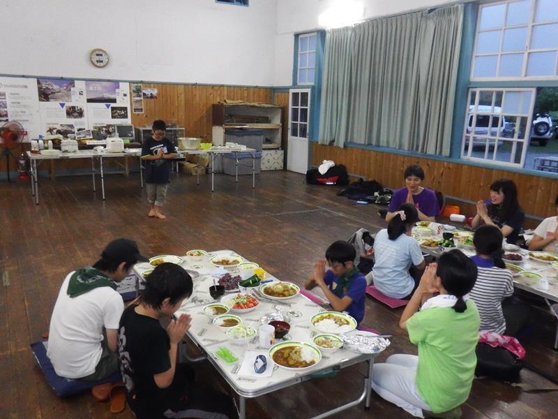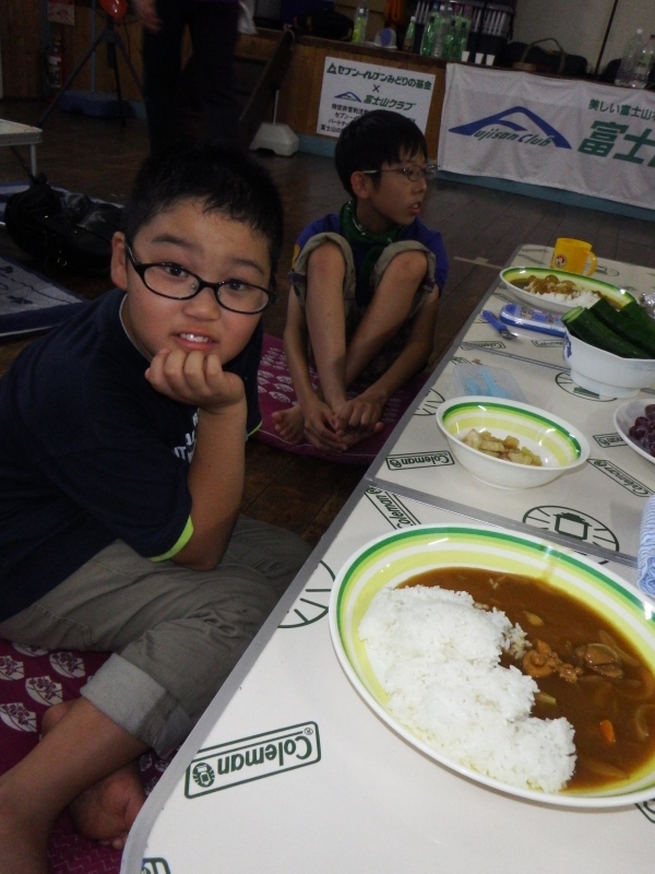 号令で食事が始まり、みんなお腹いっぱいカレーを食べました。