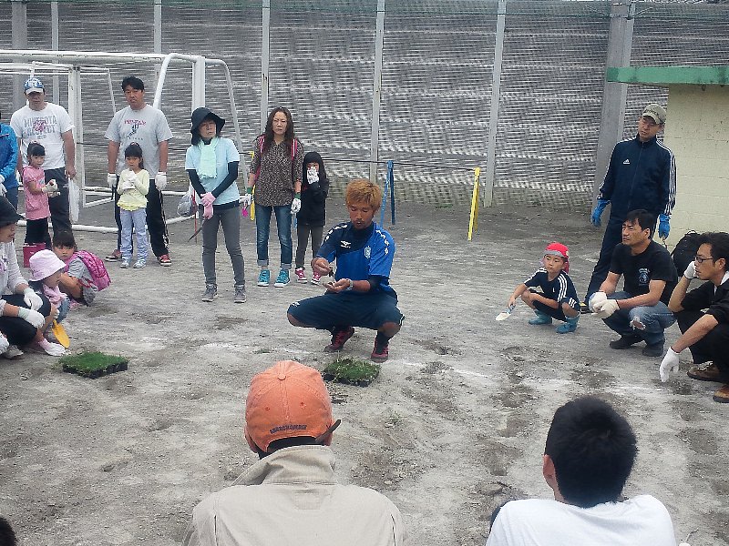 芝生植栽の指導には、湘南造園株式会社の安嶋さんが招かれ、