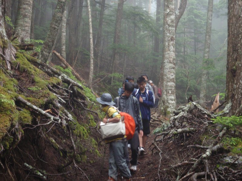 頂上を目指す登山客がほとんどいない静かな登山道を