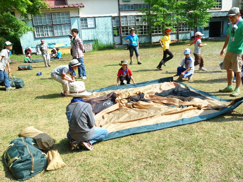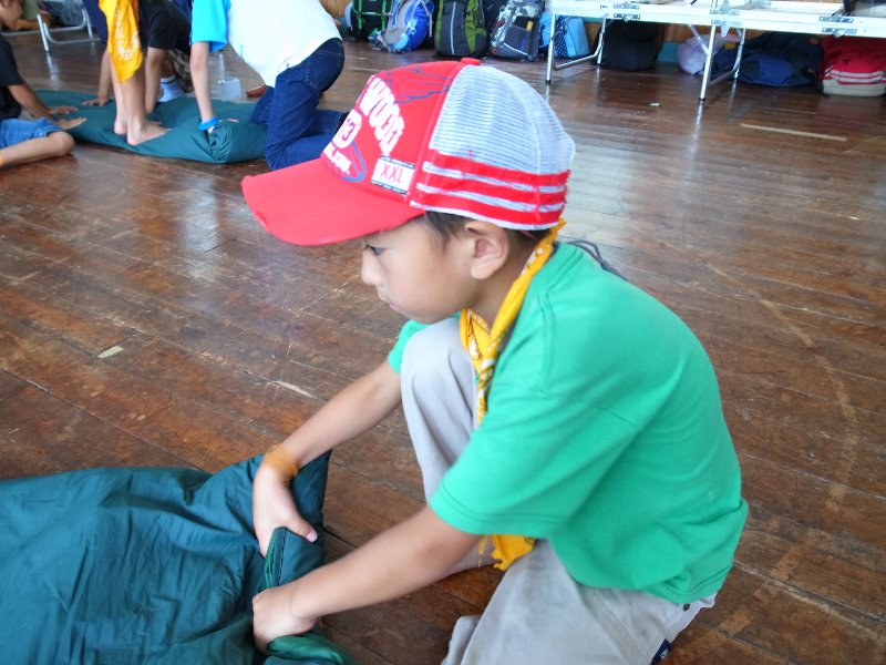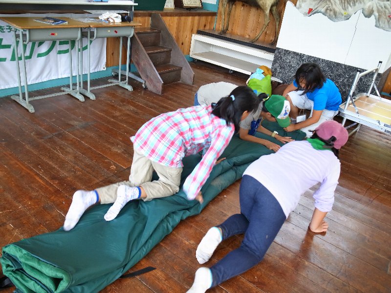 テントと寝袋の片づけ。あまった時間を使って、もりの学校の掃除もしてくれました!!