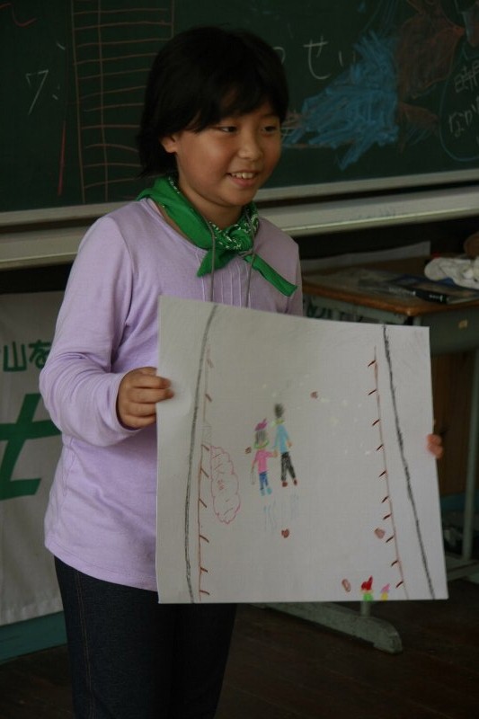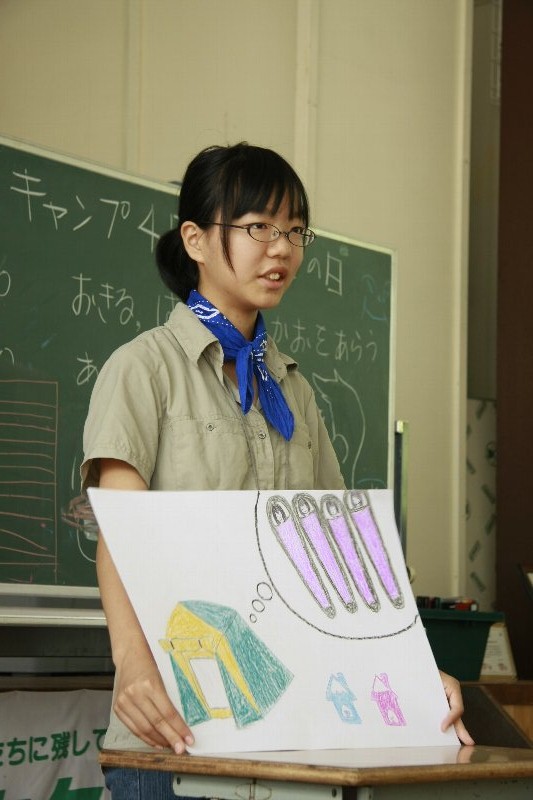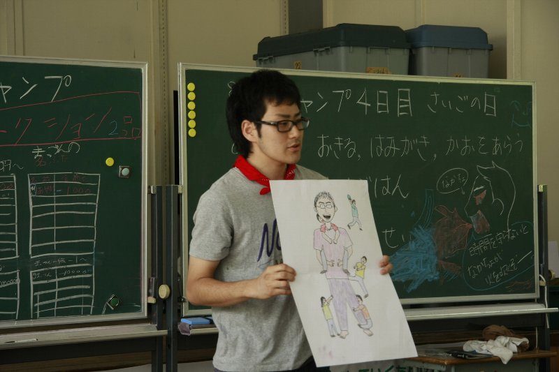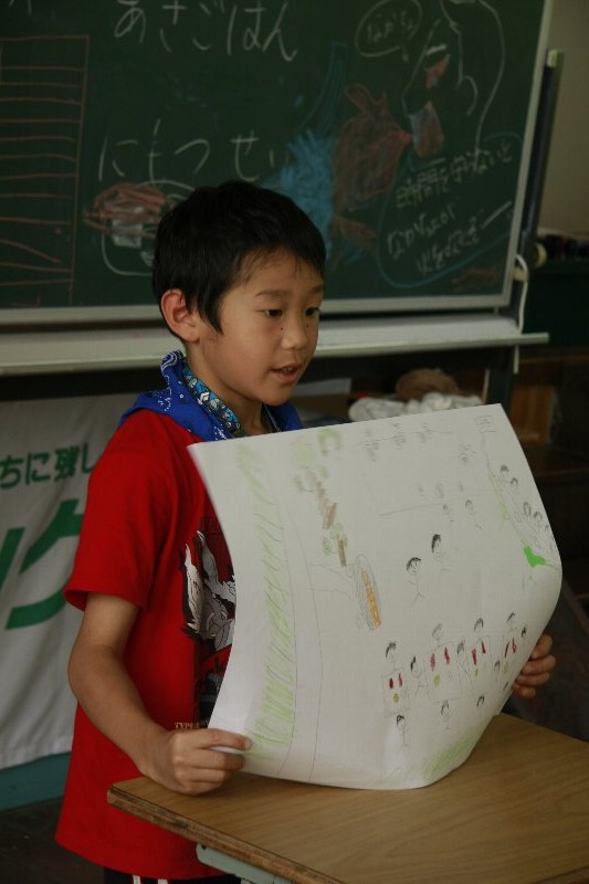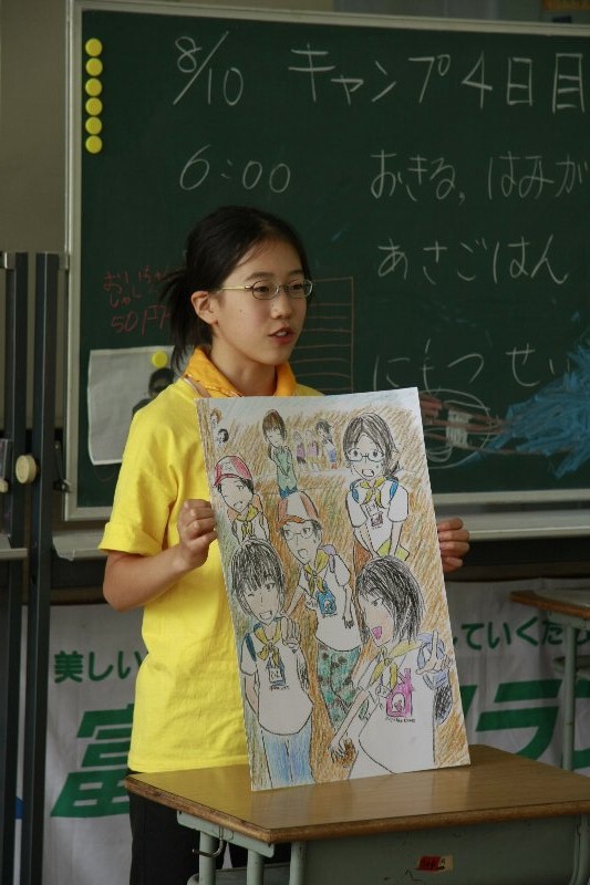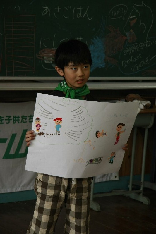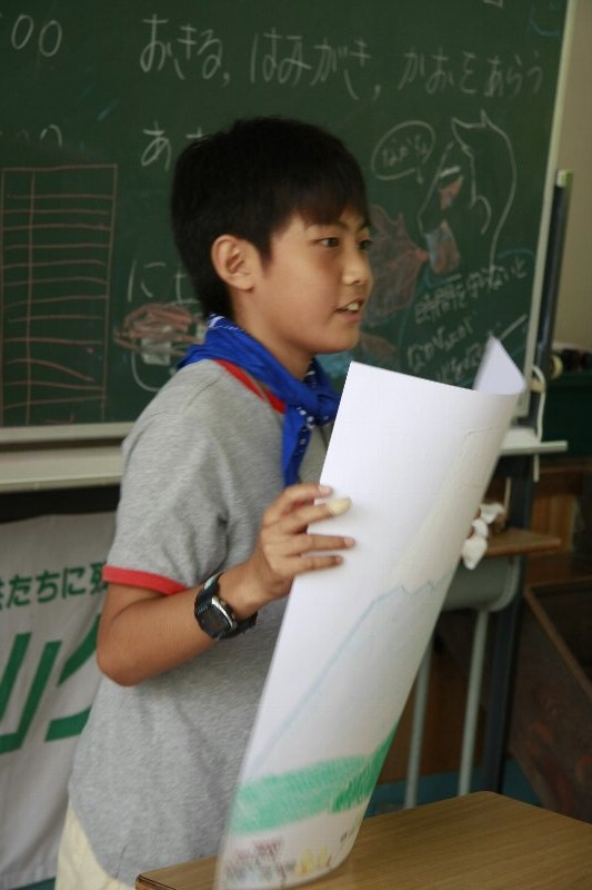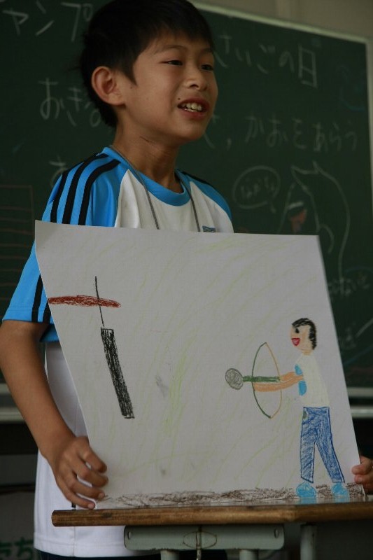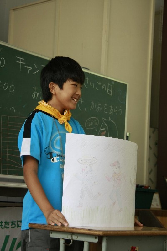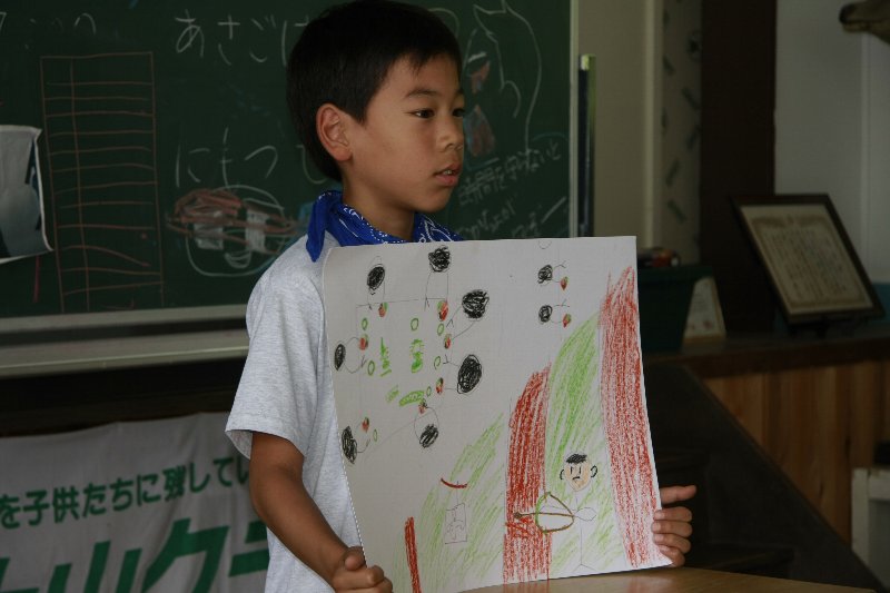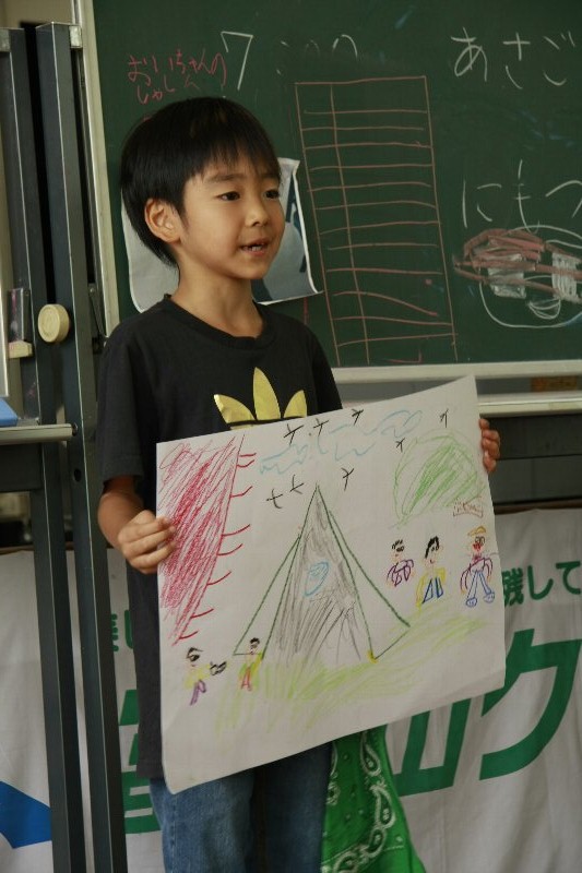 このキャンプでの思い出を一人ずつ絵に描いて、発表してもらいました。