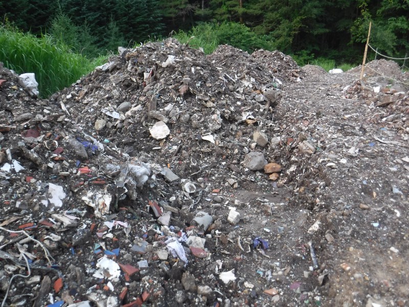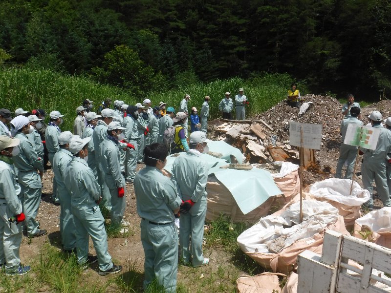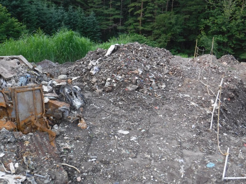 鳴沢村焼間地区産業廃棄物不法投棄現場。